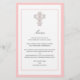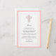 Una elegante cruz diseñada con rizos ondulantes y patrones de flor de lis, coordina perfectamente con nuestras invitaciones de bautismo, comunión y confirmación. Cada línea se puede personalizar para su menú. El diseño de cruz rosa está disponible también en pegatinas y franqueo a juego.