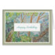 Una hermosa pintura de árboles y un sendero forestal con un cálido mensaje de cumpleaños para los senderos felices para el próximo año.