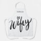 Elegante delantal WIFEY para mujeres. diseño con letras a mano con poco corazón. Obra de escritura a mano. Idea de regalo de ducha de novia divertida para recién casados/nueva esposa o novia. Cocina personalizado y delantales de barbacoa en blanco y otros colores. Añade tu propio nombre personalizado.