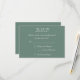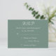Crea tu propia caligrafía de tipografía de escritura personalizado, personalizada y elegante, moderna, verde polvoriento y blanco, tarjeta de invitación RSVP de boda personalizada. Simplemente introduzca la fecha de su boda, la fecha de su esposa y los nombres de su novio y novia. Mientras personalizas, podrás ver una previsualización, a lo largo de todo. Un elegante RSVP de boda para todos sus amigos y familia.