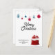 Elegante tarjeta de vacaciones sin foto con una estrella de Navidades Elegante en Blanco y Rojo adornada con adornos y rodeado de regalos envueltos. Personalice la tarjeta agregando un saludo personalizado, su apellido y el año. La tarjeta navideña de vacaciones del árbol de Navidad se revierte a tu mensaje mostrado con letras blancas y un fondo rojo oscuro con sutil sutileza.