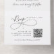 Este elegante encanto QR en una sola invitación a la boda es perfecto para un simple boda. El moderno diseño minimalista presenta una caligrafía romántica blanca y negra intemporal con un estilo bohemio de cuento de hadas. Incluya un código QR para que sus huéspedes puedan acceder a RSVP en línea. Escriba a mano las direcciones de los invitados en la parte posterior de la invitación plegada o compre pegatinas coordinados de etiquetas de direcciones de invitados (se venden por separado).