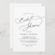 Estas elegantes invitaciones a la ducha de novias son perfectas para una simple ducha de boda. El moderno diseño minimalista presenta una caligrafía romántica blanca y negra intemporal con un estilo bohemio de cuento de hadas.