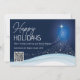 Un diseño hermoso y lujoso que presenta olas de estrellas que se unen sobre un banco de nieve abstracto para formar un árbol de Navidad con una estrella brillante que brilla contra un fondo azul profundo. Esta ilustración contemporánea y moderna es ideal tanto para uso comercial como personal y las plantillas blancas personalizadas con su texto personalizado. Al igual que el código QR incrustado (cambiar a su propio código o logotipo) en la parte delantera y la plantilla de foto en la parte trasera. Estos son ideales para el período festivo de vacaciones y transmiten el espíritu de la temporada a clientes, amigos y familiares. ¡Felices fiestas!