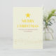 Celebre la temporada con esta elegante tarjeta navideña de Feliz Navidad con fondo de crema de moda, delicado acento de estrella dorada y un falso guión de Relieve metalizado dorado. El diseño minimalista de la fachada se combina con el dorso burdeos, creando una tarjeta de Navidad atemporal y lujosa. Perfecto para enviar saludos festivos a la familia, amigos o clientes de negocios, este diseño moderno y sofisticado difunde alegría, paz y amor.