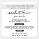Florida Cottage Law Label en un diseño moderno en blanco y negro con elegante fuente caligráfica, espacio para su nombre comercial, dirección, nombre del producto, ingredientes y alérgenos. Por favor asegúrese de editar todo el texto para que se ajuste a sus necesidades y a las regulaciones locales de la Ley de Cottage de alimentos. Cada estado y país tiene sus propias reglas específicas, el texto de marcador de posición es sólo una guía. Utilice estos pegatinas de panadería para crear etiquetas de ingredientes de licencia de alimentos de marca para su negocio de comida casera.