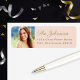 Diseño de etiqueta de dirección personalizada simple y elegante que presenta una foto de último año de su graduado con texto de dirección de regreso en dorado antiguo y fondo rosa pálido. Los colores se pueden personalizar.