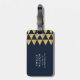 Viaja con estilo con esta elegante etiqueta de equipaje que presenta un moderno patrón geométrico del triángulo de oro falso con un fondo azul. Personalice esta etiqueta con su información y para obtener más opciones, como cambiar el tipo de letra y su tamaño, haga clic en el botón "Personalizar". *Tenga en cuenta que la marca de agua Zazzle que aparece en la vista previa del zoom no aparecerá en el producto impreso final. ©Rosewood and Citrus