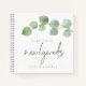 Elegante Eucalyptus Deseos para el Libro de Huéspedes de Novias. Una opción alternativa para tu libro de bodas, perfecta para que tus invitados escriban sus buenos deseos, este diseño tiene un elegante guión para recién casados y eucaliptos de color verde y oro en la parte superior de la derecha. El resto del texto se puede personalizar fácilmente, incluyendo las palabras en la portada trasera.