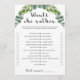 ¿Buscas el rompehielos perfecto para que la gente hable y el humor fiesta de tu ducha de bebé? ¡Juega "Ella Prefiere"! Después de todo, sus invitados tienen una cosa en común: ustedes conocen a la futura madre. Estas tarjetas de juego con hojas de eucalipto serían perfectas para una ducha de bebé con temática verde. Este divertido juego es muy fácil de jugar. Sólo hay una regla: debes elegir una respuesta. Dé a todos 5-10 minutos para marcar las opciones en esta hoja de juego de vegetación que creen que haría la futura mamita. Cuando todo el mundo haya terminado, pregúntale a la futura madre qué es lo que realmente elegiría y subiría tus puntuaciones. ¡La persona con las respuestas más correctas gana!
