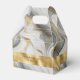 Caja de favores de boda con un diseño de imitación de oro, gris y mármol blanco.