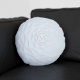 Una almohada redonda para el boudoir o el rincón de lectura, una almohada de imitación blanca con un espacio para la primera
