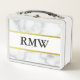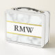 Esta lona presenta un elegante diseño de mármol blanco. También puede editar el texto de visualización en negro para mostrar el monograma correcto.