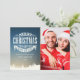 Difunde la alegría de los Navidades con esta elegante tarjeta de 4 fotos. Personaliza el frente con tu mensaje de vacaciones, nombre de familia, año y foto especial. El reverso presenta otras 3 fotos enmarcadas en oro en una escena de nieve de invierno en bonito. Diseñado por Thisisnotme©