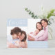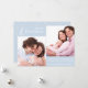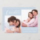 Envíe Navidades a su familia y amigos con esta elegante tarjeta de vacaciones. Inserta dos de tus fotos familiares favoritas y personaliza el mensaje de tus Navidades. La parte delantera presenta Feliz Navidad en un guión moderno de broche blanco con espacio para tu mensaje personal y nombres familiares en un fondo azul helado. Lo contrario está en el mismo azul con un patrón abstracto de árbol de Navidad