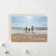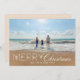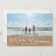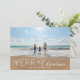 Elegante "Feliz Navidad", tarjeta de vacaciones de una foto. La fuente frontal es blanca. "Feliz Navidad" de vuelta en rojo oscuro con el mensaje personalizado debajo en negro sobre un fondo neutral.