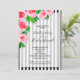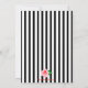 Las invitaciones a fiestas de cumpleaños florales de moda tienen un borde superior de rosas rosas rosas y vegetación sobre un fondo de rayas blancas y negras. Personalice con los detalles de su fiesta en una carta moderna de moda. Las invitaciones se invitan a rayas negras y blancas y una pequeña rosa rosa en la parte inferior.
