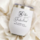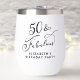 Cincuenta y Fabuloso - ¡Tostadas para una vida bien vivida! Elegante vaso de vino termal para su fiesta de 50 años con "50 & Fabulous" en un elegante guión de caligrafía y su nombre en una simple tipografía moderna.