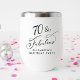 Setenta y fabuloso - ¡Tostadas para una vida bien vivida! Elegante vaso de vino termal para su fiesta de cumpleaños 70 con "70 & Fabulous" en un guión de caligrafía de moda y su nombre en una simple tipografía moderna.