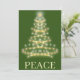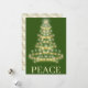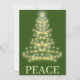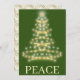 Manténgase en contacto con los que les gusta esta temporada de vacaciones enviándoles esta tarjeta. El diseño de esta tarjeta de Navidades presenta un fondo verde festivo con un estilizado árbol de Navidad dorado con una estrella encima. El texto de la parte delantera dice "PAZ". Ponga su propio saludo o mantenga el popular y moderno texto proporcionado para su comodidad.