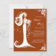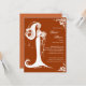 Novia elegante de 4,25" x 5,5" con flores sobre el diseño de fondo naranja oscuro. Elegante, personalizable completo para usar como invitación a la ducha de novia fiesta.
