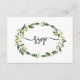 Diseño de tarjeta único y elegante que presenta hermosas rosas de acuarela blancas, ramo de peonías, "rsvp" escrito a mano moderno, sobre un fondo blanco. Utilice la herramienta Personalizar para agregar su información, cambiar fuentes, color de fondo. Para artículos coincidentes, visite mi Colección de Flor Blanca Floreciendo.