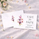 La tarjeta de fecha está muy bien diseñada y presenta delicadas flores acuáticas en suaves tonos pastel. La elegante tipografía y el diseño minimalista crean un ambiente sofisticado y romántico, perfecto para anunciar su día especial. Personalizable completo con nombres, fecha y detalles personales.