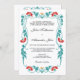 © 2014 Diseños de Socialite. Una elegante hoja, floral y bordeada con una hermosa combinación de colores o verde azulado y rojo. El diseño es perfecto para cualquier celebración o reunión. El estilo de fuente, el texto y el tipo de papel se pueden cambiar. Si necesita ayuda para personalizar, productos bodas adicionales o un cambio de color, no dude en ponerse en contacto con Socialite Designs.