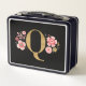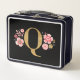 Regresa a la escuela con estilo con esta caja de bonito con monograma floral rosa. Está decorado con una letra dorada "Q" rodeada de flores. Diseñado para ti por Blackberry Boulevard.
