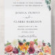 Esta invitación a la boda del otoño de bonito incluye flores de otoño y un diseño sencillo y todo en uno. La acuarela floral incluye melocotón, polvorientas rosas rojas, violetas y ricas rosas amarillas con un frondoso follaje verde. La invitación a la boda y el RSVP presentan una tipografía moderna y un diseño elegante. El RSVP incluye tres opciones de comida. Papelería boda coincidente con nuestra colección "Autumn Elegance".
