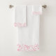 Elegantes elementos de diseño de encaje floral rosa-claro sobre fondo blanco y sobre la parte superior e inferior.