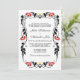 © 2010 Socialite Designs. Una elegante hoja, flores y remolinos bordean con una hermosa combinación de colores. El diseño es perfecto para cualquier celebración o reunión. El estilo de fuente, el texto y el tipo de papel se pueden cambiar.