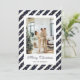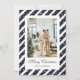 Tarjeta de Navidades fotográficos modernos en azul y blanco con un marco fotográfico en azul y blanco con estrellas y un elegante tipo de letra de guión. Personaliza fácilmente esta tarjeta de Navidades de fotos festivos con tu foto y nombre de familia.
