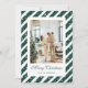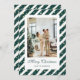 Tarjeta de Navidades de fotografía moderna en verde y blanco con un marco fotográfico en verde y blanco con estrellas y un elegante tipo de letra de guión. Personaliza fácilmente esta tarjeta de Navidades de fotos festivos con tu foto y nombre de familia.