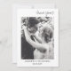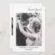 El frente dice "Gracias" en una simple tipografía moderna y espacio para tus nombres y fecha de boda, mientras que el trasero puede ser personalizado con una foto y tu propio mensaje personal en una simple tipografía negra.
