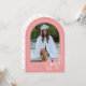 Con una foto en forma de arco de moda, esta invitación combina a la perfección los tonos rosa y blanco crudo para crear una carta sofisticada y femenina. FRENTE: "Grad" se muestra en un guión escrito a mano y parcialmente sobrepone la foto en forma de arco. Personalice la plantilla con la foto de su graduado, los nombres de sus alumnos y apellidos, el nombre de la escuela y los dos últimos dígitos de su año de graduación. BACK: Un patrón geométrico con arcos simples dibujados a mano. © Kimbellished, LLC