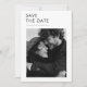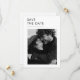Esta elegante tipografía fotográfica Save the Date Invitation presenta una combinación de colores clásicos en blanco y negro, con una foto en la parte delantera, perfecta para una pareja que aprecia la sofisticación y la sencillez.
