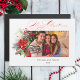 Elegante guión de caligrafía Merry Christmas greeting (color es personalizable) plantilla de fotografía con pulverización colorida de Navidades poinsettias, holly y pino.