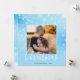 Esta elegante carta de Navidades simples cuenta con copos de nieve sobre un fondo invernal azul claro. Feliz Navidad está escrito en un hermoso guión escrito a mano. Personalice esta tarjeta de Navidades con su foto y nombre de familia.