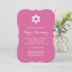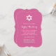 Esta invitación a Bat Mitzvah es rosa brillante y está decorada con el tipo de cinta y la Estrella de David. Es fácil de personalizar; sin embargo, si se necesita ayuda o si se necesitan elementos de coordinación adicionales, simplemente contacte con nosotros en prettyfancyinvites@gmail.com con su solicitud.