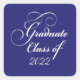 Elegante pegatina de graduación blanco y azul para adjuntar a los anuncios de graduación, las imitaciones de la fiesta de graduación, guardar la fecha y otra correspondencia del documento de graduación. Perfecto para la clase graduada de 2022. Tipo de letra elegante y clásico.
