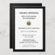 Elevar su gran celebración de apertura con nuestra elegante invitación a la gran apertura. Con un diseño clásico con un tipo de letra negro, un logotipo de sello dorado en personalizable y un elegante marco de impresión en textura negra, esta invitación marca el tono perfecto para el gran día de tu empresa. Simplemente personaliza con el nombre de tu empresa, los detalles de los eventos y la información de RSVP para crear una invitación memorable y sofisticada. Da una impresión duradera con este diseño atemporal.