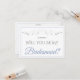 Use esta "tarjeta de presentación de la dama de honor" para pedirle a su amigo especial, hermana u otro miembro de la familia que sea una dama de honor para su boda. Diseñado para coordinarse con nuestra Suite de Bodas Elegantes Azul y Gris, cuenta con texto azul claro y gris sobre un fondo blanco con un Relieve metalizado falso plateado. Hay un espacio para escribir una nota especial, así como los nombres de la pareja boda y la fecha de boda. Todos los campos son completamente personalizable.