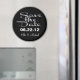 No dejes que olviden tu gran día. Aquí hay un Elegant guardar el imán redondo de fecha que seguramente les recordará.