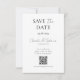 Comparta sus emocionantes noticias de fecha de boda con nuestra moderna tarjeta de fecha con el código QR boda. La foto de dos caras guarda la invitación a la fecha con fuentes caligráficas en blanco y negro con un diseño clásico y elegante. Simplemente personalizar la parte delantera de la invitación a guardar la fecha usando la función 'editar usando la herramienta de diseño' en Zazzle para cargar tu foto de pareja favorita y tu fecha de boda. La parte posterior de la invitación a la invitación boda se puede editar agregando sus nombres, fecha de boda, ubicación del boda y opción para cargar un código qr único en su sitio web boda para que sus invitados puedan encontrar más información sobre sus planes de día de boda. Para una boda más minimalista, excepto los diseños de la invitación de fecha, por favor visite nuestra colección de fechas de reserva vía https://www.zazzle.co.uk/collections/save_the_dates-119327072976167840 Fotografía de la pareja por @emily_robinson_photo
