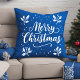Elegante guión navideño de Feliz almohada. El diseño presenta el texto "Feliz Navidad" en una tipografía blanca con bayas blancas, copos de nieve y elementos de acento giratorio sobre un fondo azul. Hace el mejor regalo personalizado para usted, sus amigos, familiares e incluso vecinos. Tenemos más de 35 almohadas más de Navidades en nuestra colección que definitivamente te encantará. Por favor, compruébalo y obtén el mejor regalo de Navidades con deseos especiales para tu gente especial. Feliz Navidad!