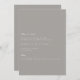 Esta elegante tarjeta de la fiesta de compromiso en blanco y gris de guión presenta escritura moderna y texto limpio para un diseño gris sencillo y elegante que le encantará. Añade texto personalizado para proporcionar cualquier información adicional necesaria para tus invitados. Siéntase libre de enviarme cualquier pregunta relacionada con el diseño - ¡estaré encantado de ayudar!