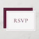 Una elegante y clásica tarjeta de gabinete RSVP burgundy, con caligrafía de escritura. Perfecto para la novia moderna que tiene un romance formal. Para eliminar las opciones de comida, hemos creado un video de cómo hacerlo aquí: https://youtu.be/ZGpeldQgxoE Ver colección completa aquí: https://www.zazzle.com/collections/elegant_burgundy_classic_script_wedding-119551906868087326 Contactar con el diseñador para productos coincidentes. Copyright Elegant Invita, todos los derechos reservados.
