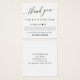 Gracias por su paquete de compra insertado en un elegante diseño minimalista con un corazón donde la persona que preparó el paquete puede firmar su nombre a mano por un toque personal. Añade tu información de contacto al otro lado de la tarjeta de agradecimiento. También puede escribir un código de descuento para la próxima compra de sus clientes.