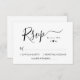 Tarjetas de respuesta de boda elegantes minimalistas modernas en negro y blanco con caligrafía que presentan un diseño de tipografía elegante y chic con guion de caligrafía. Con el monograma de la pareja con un pequeño motivo de corazón. Texto personalizado minimalista que se puede personalizar con la fecha límite de RSVP. El diseño incluye una línea para el nombre del invitado(s), asistencia al evento y el número total de invitados asistentes.